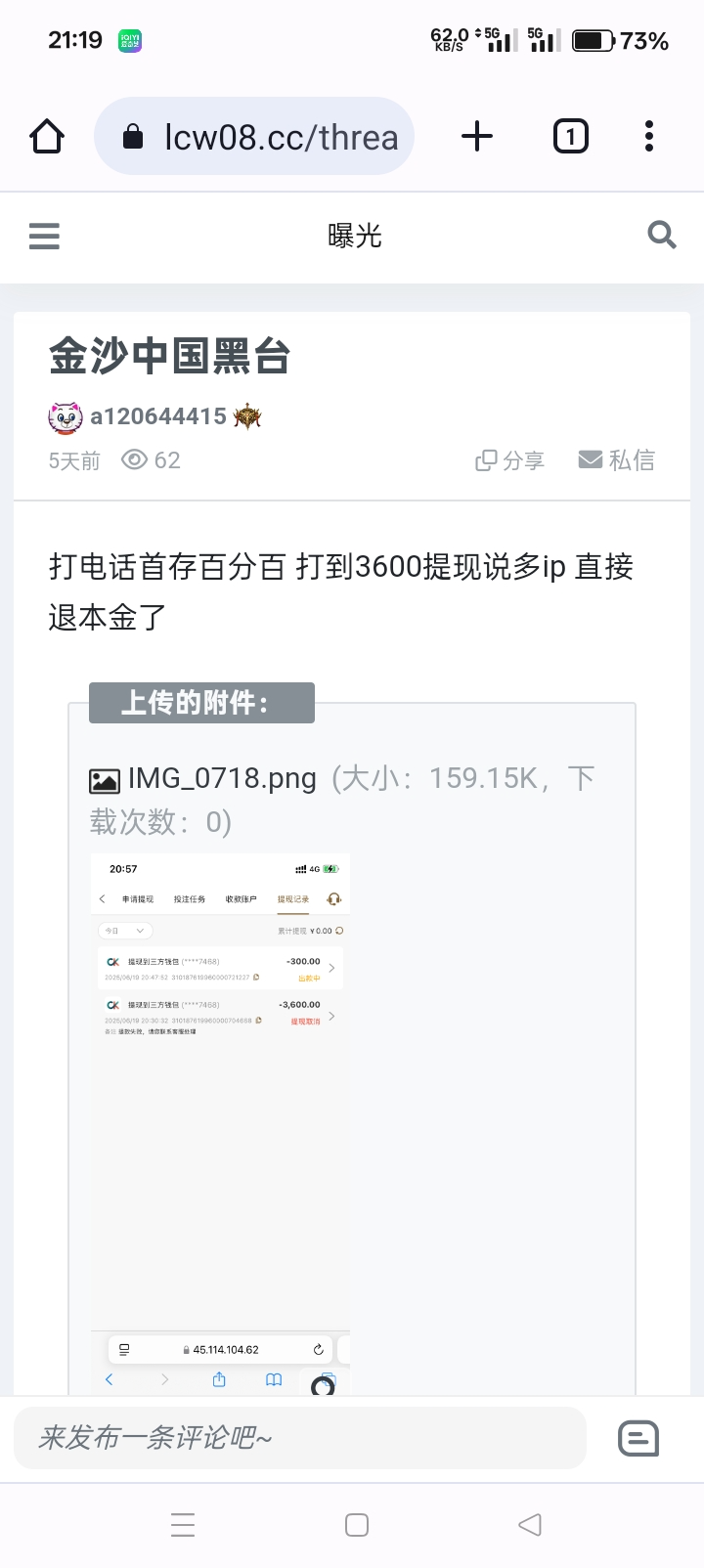 这傻逼台今天也给我打电话了,说好的100+100,3倍流水,充值好了问客服说要8倍,问她怎么回事,马上挂电话,个死妈东西,好在刚刚反水2块打上100给提了,没亏