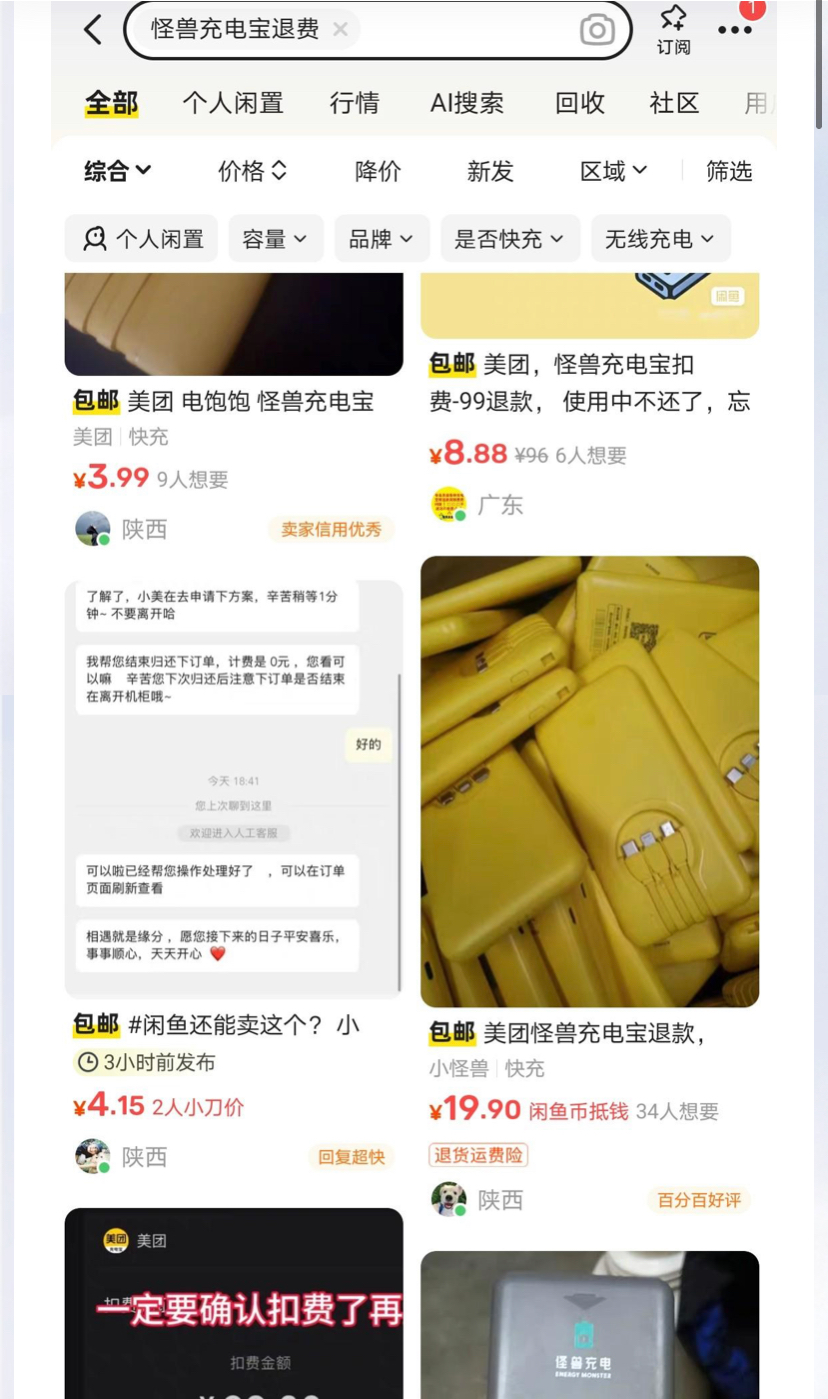 有被扣99的找在线客服,死咬说还了充电宝,话术很简单,多跟客服拉扯,百分百退款,老哥们也可以挂闲鱼教别人怎么退款,一单4—20价格自己订,单多可以一天赚一两百美滋滋