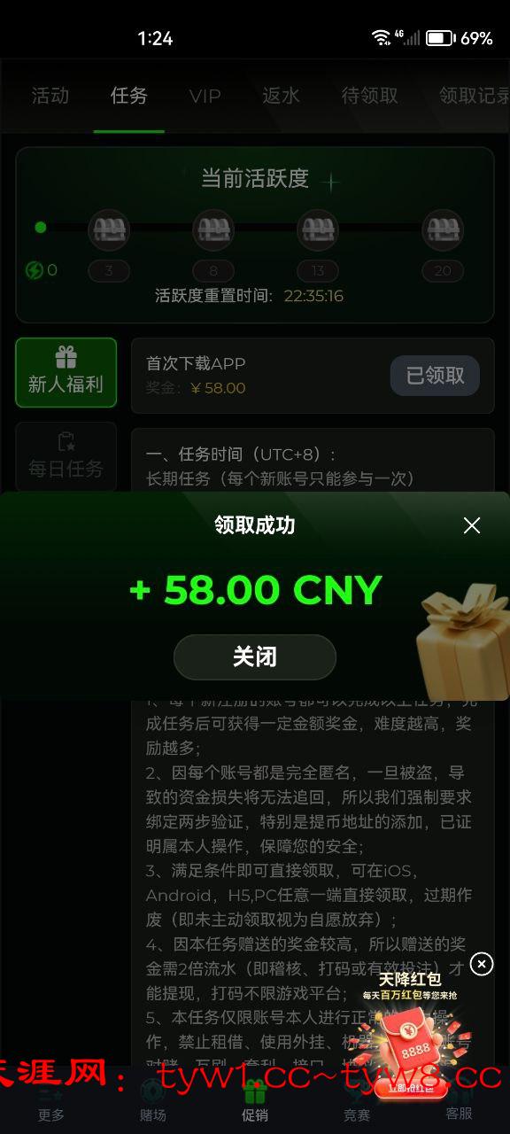 后面别注册了,要有效投注五千才能领58